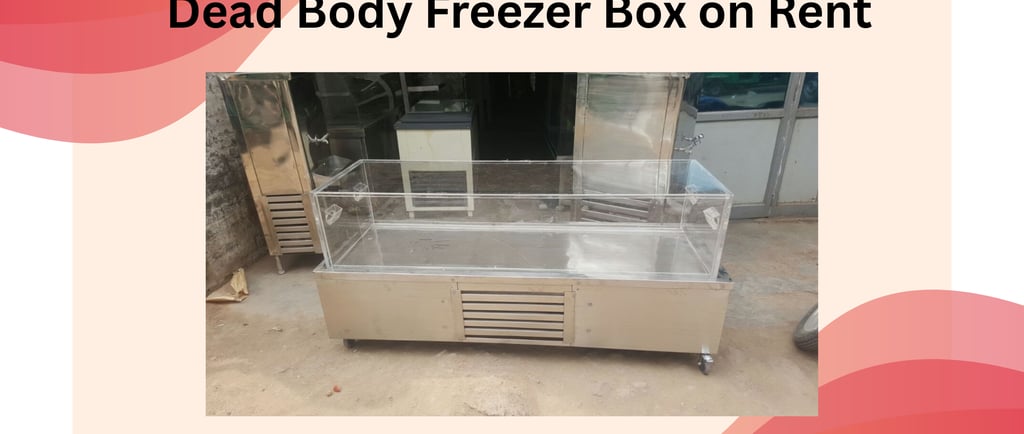 Hum Dead Body Freezer Box on Rent in Noida provide karte hain, taaki antim sanskar se pehle sharir ko surakshit aur hygienic condition mein rakha ja sake. Hamare freezer box temperature control ke saath 24Γ7 available hote hain aur ghar, hospital ya mortuary ke liye suitable hain.